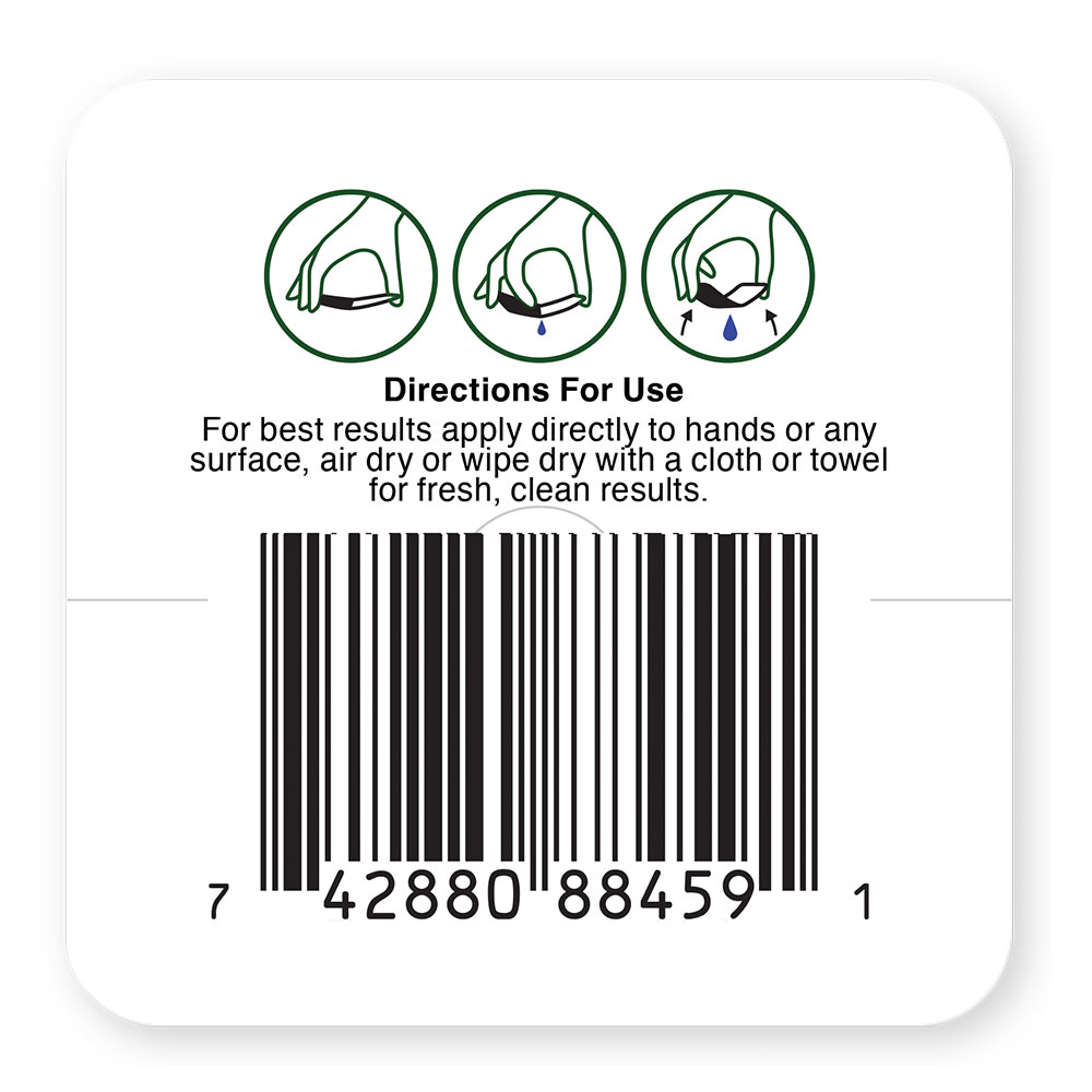 - Apply on hands or on a paper towel, then wipe surfaces clean